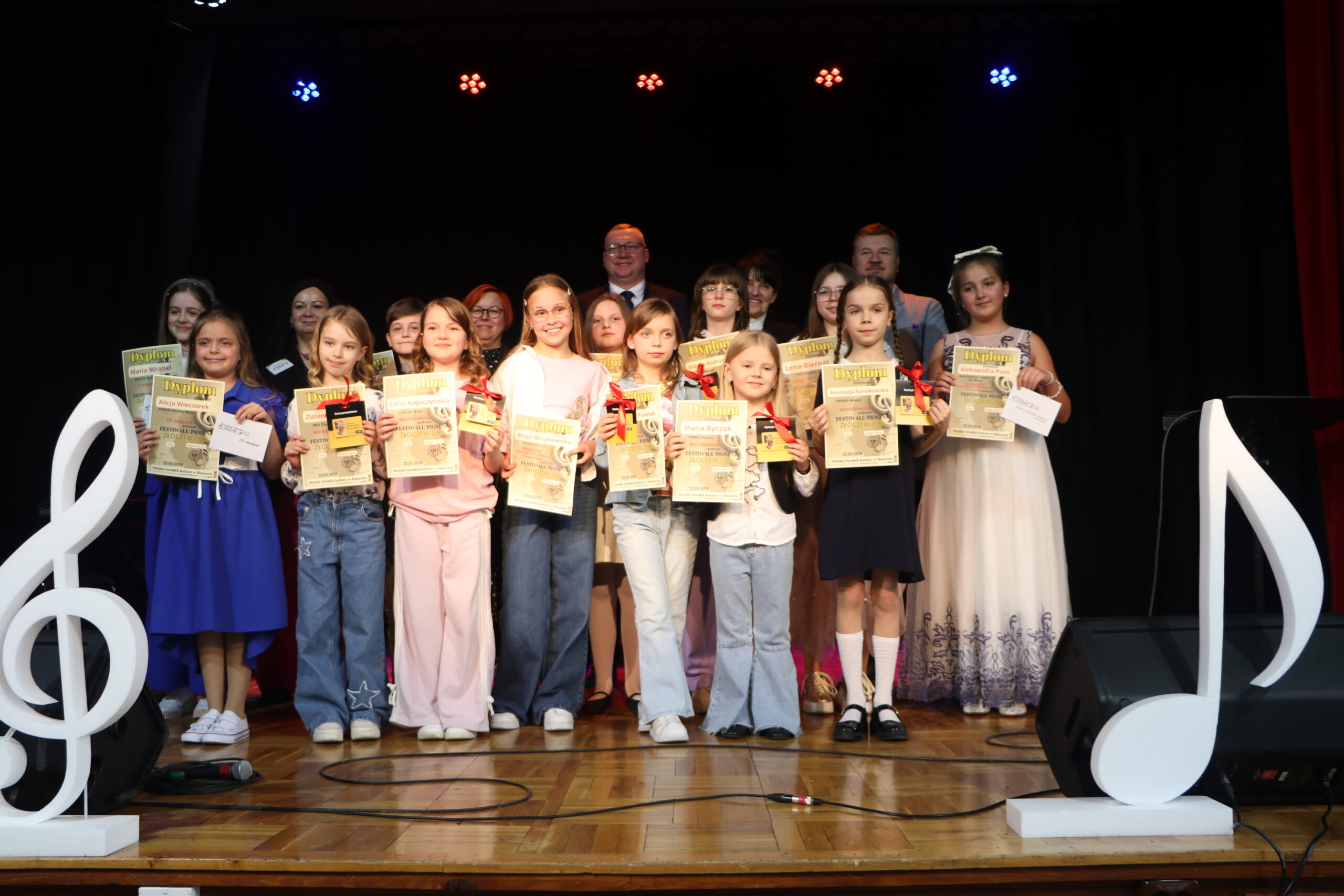 W ubiegłą niedzielę w Miejskim Ośrodku Kultury w Złoczewie odbył się 32 Festiwal Piosenki. Jury w składzie: Ewa Uryga, Zyta Solarska i Przemysław Ruta przesłuchało dziesiątki wokalistek i wokalistów, a następnie wyłoniło laureatów. Naszą placówkę reprezentowały 3 wokalistki, szlifujące swój warsztat wokalny pod okiem niezastąpionego Jarosława Miłka: