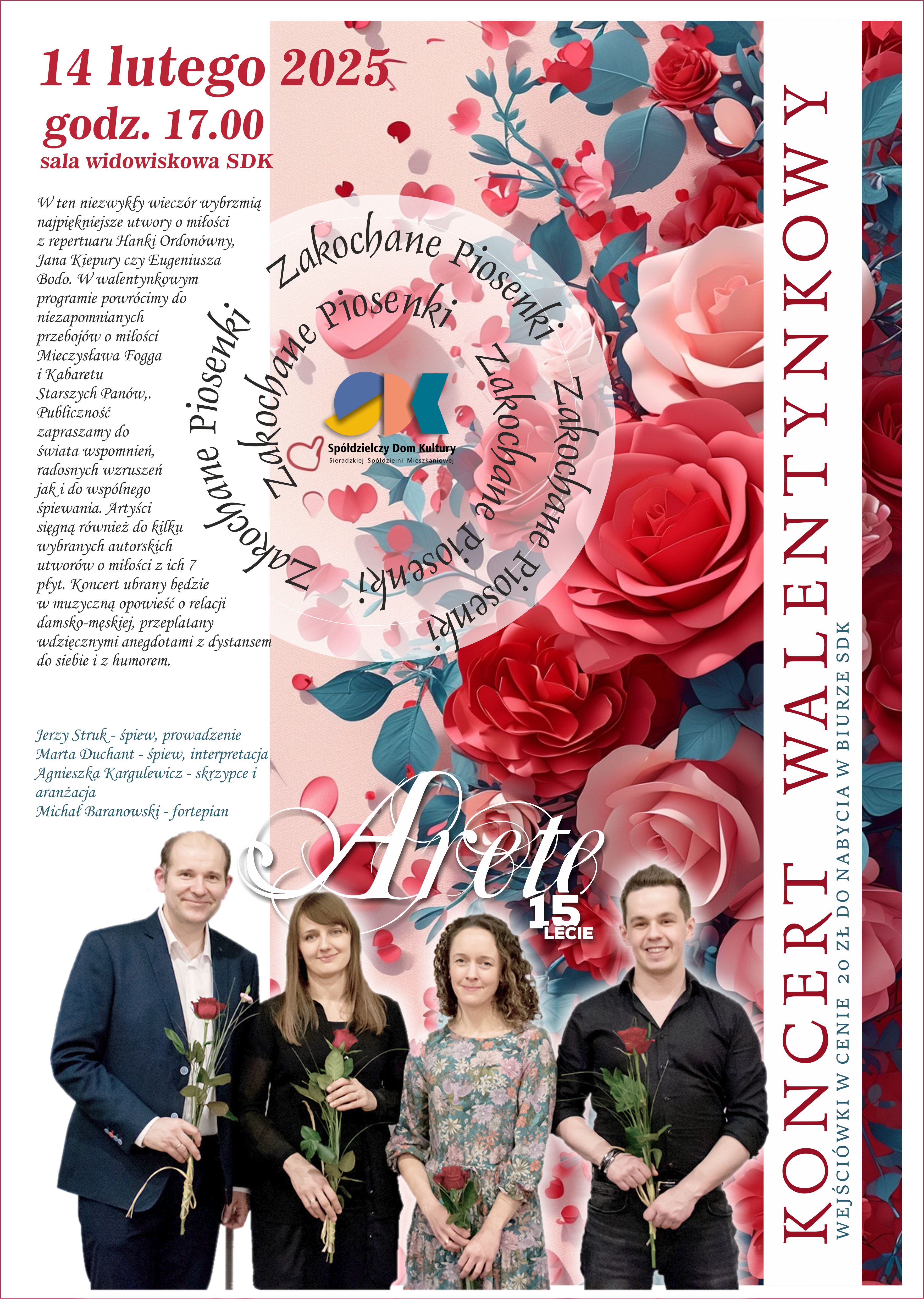Na Walentynkowy Koncert pt. "Zakochane Piosenki" zapraszamy w dn. 14 lutego o godz. 17.00