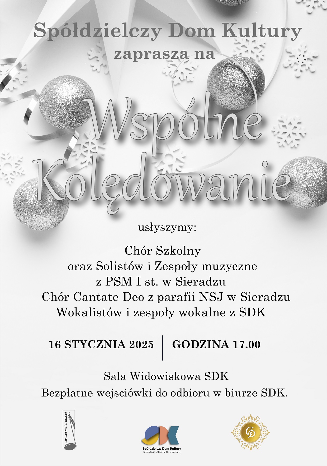 16 stycznia 2025 o godzinie 17.00 w Sali Widowiskowej Spółdzielczego Domu Kultury.